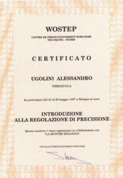2000, dal 1 agosto al 15 dicembre. Corso di restauro su orologi complicati antichi e moderni presso Wostep a Neuchatel (CH).